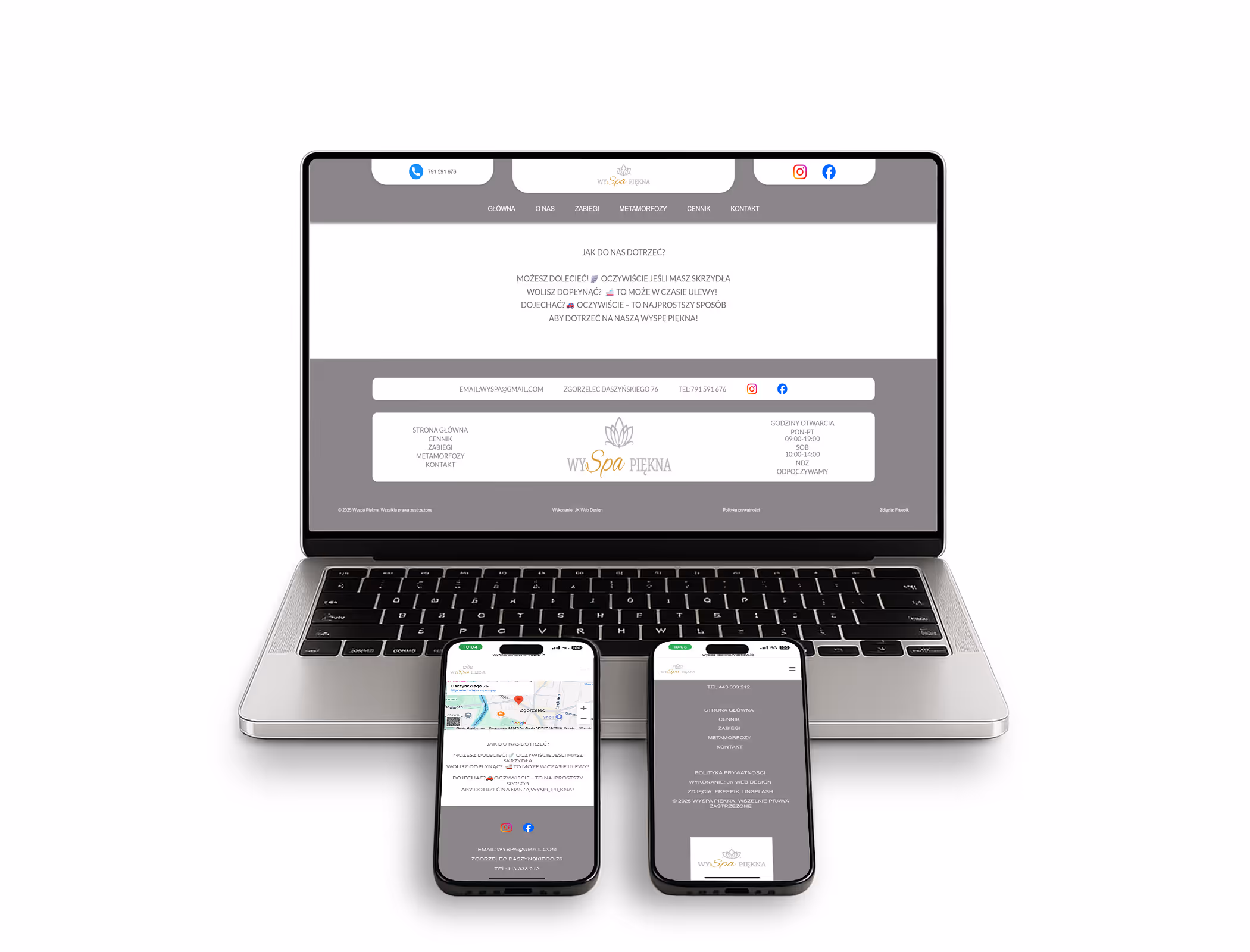 Nauczyłem się procesu projektowania całej strony z podstronami od struktury treści po prowadzenie użytkownika do kontaktu.