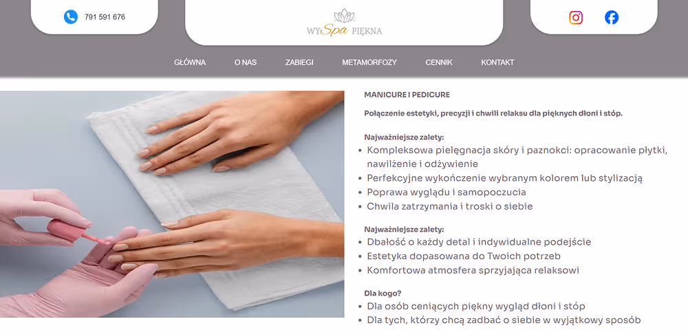 Strona została ukończona w około 95%. Właścicielka z powodów osobistych musiała obecnie ograniczyć działalność salonu.